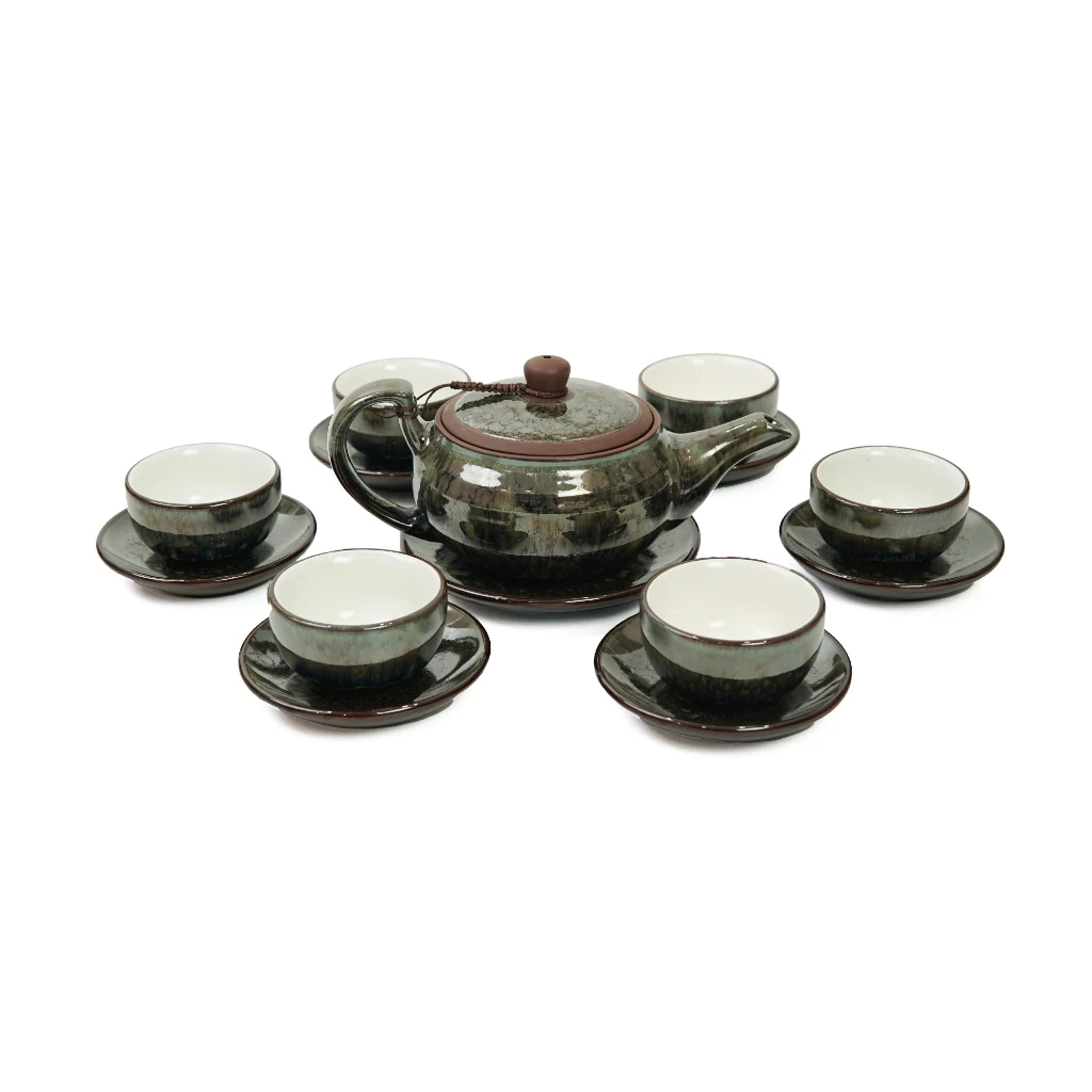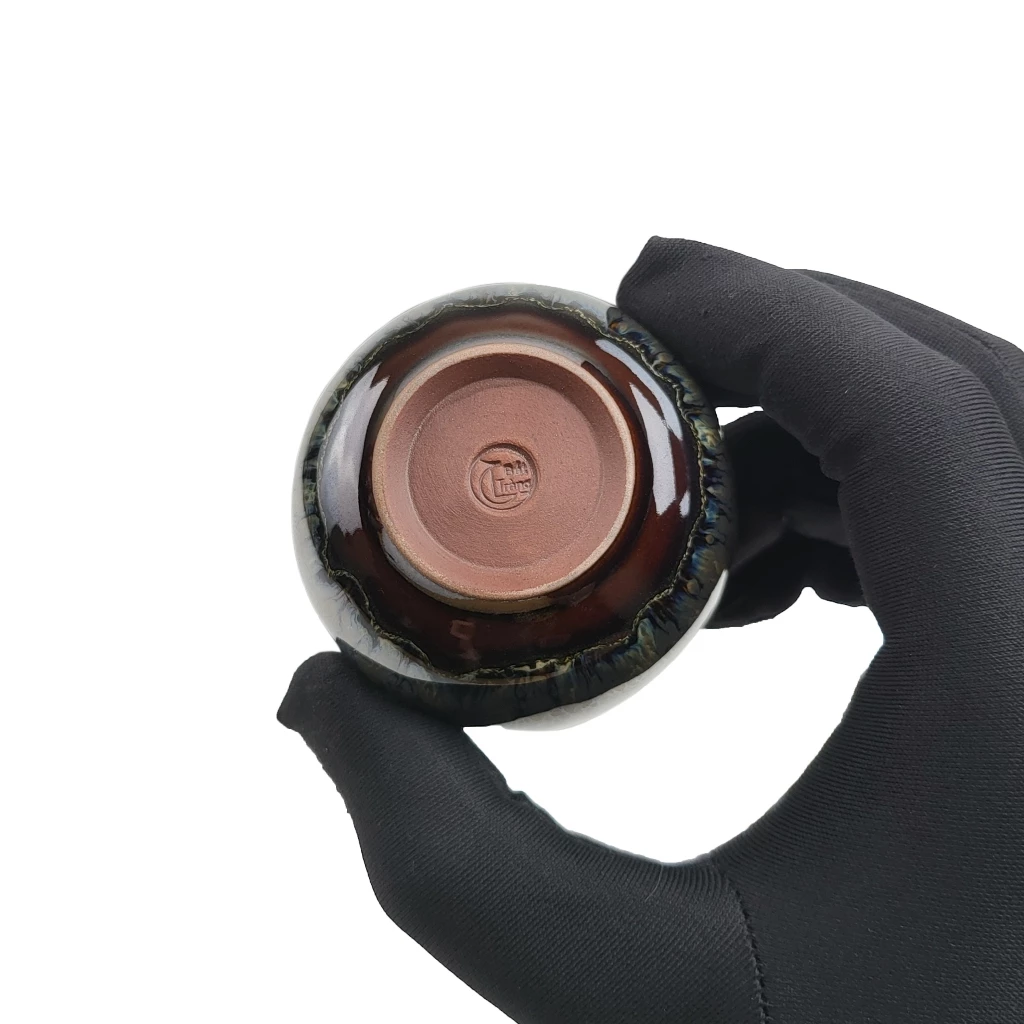 Bộ Ấm Chén Tử Sa 300ml Ngọc Thạch Dáng Vuốt Gốm Sứ Bát Tràng Men Hỏa Biến của nghệ nhân Vương Mạnh Tuấn