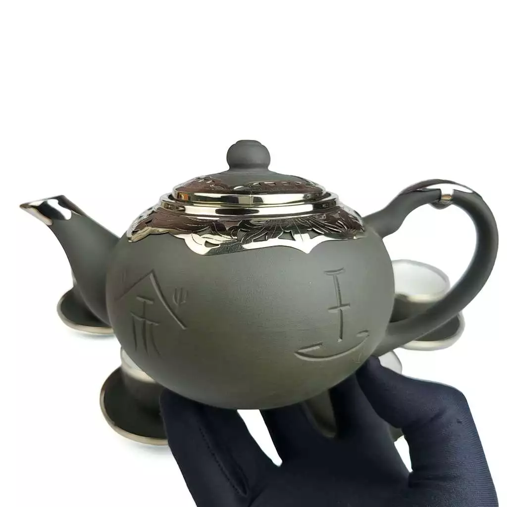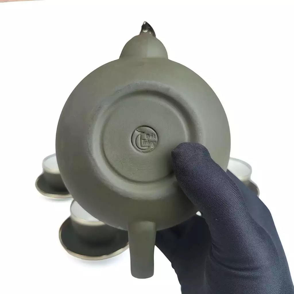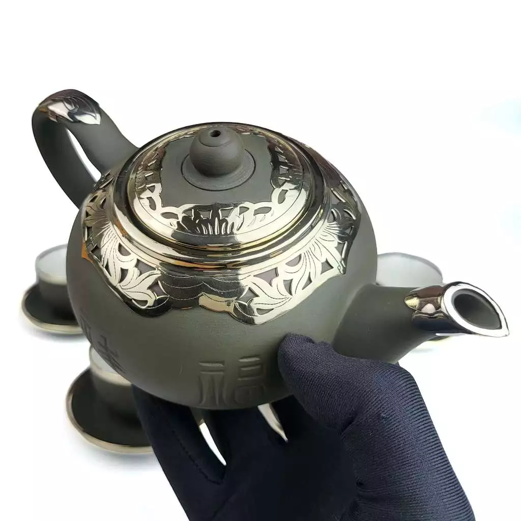 Bộ Ấm Chén Tử Sa 350ml Bọc Đồng Gốm Sứ Bát Tràng Họa Tiết Phúc Lộc Thọ nghệ nhân Vương Mạnh Tuấn