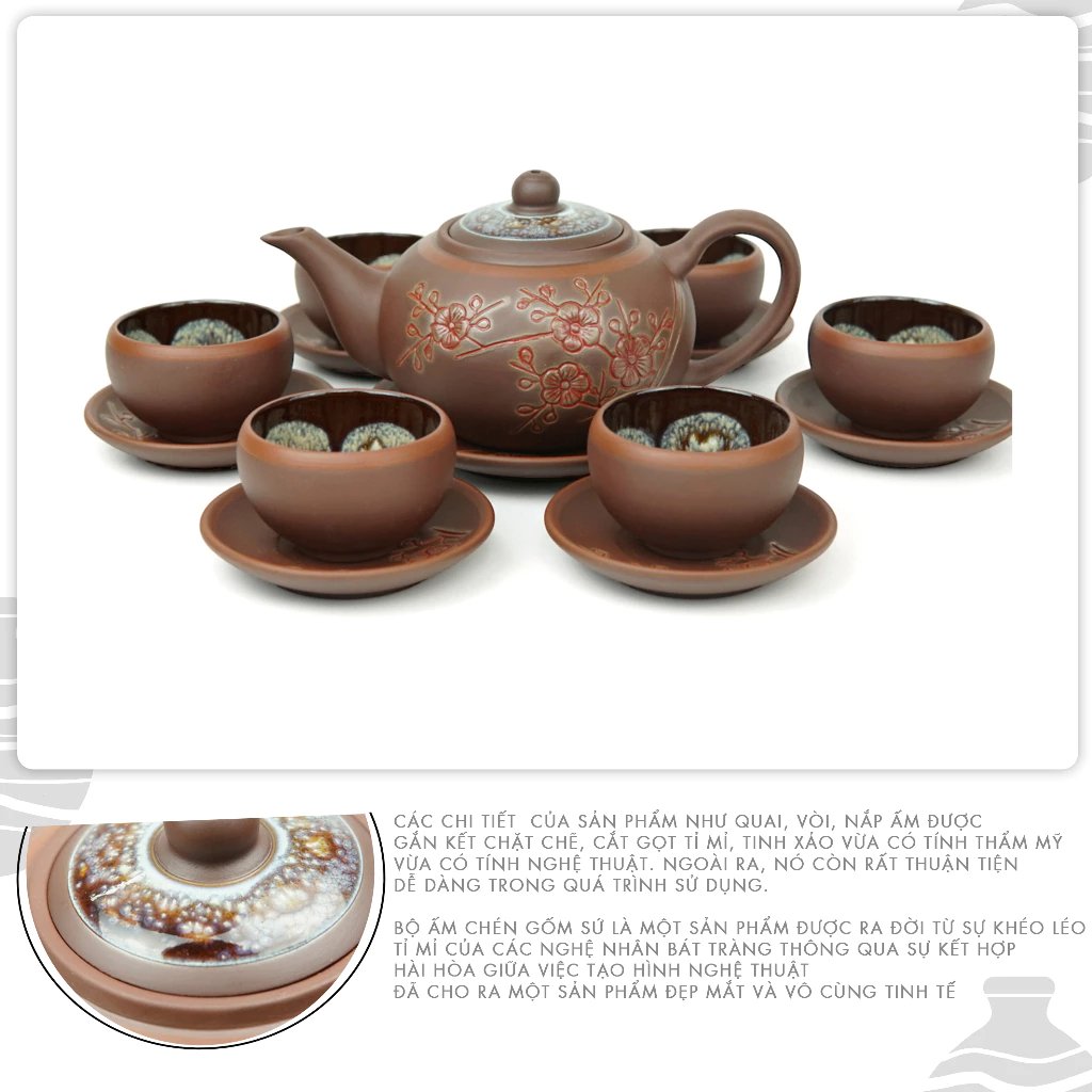 + Tên sản phẩm: Bộ ấm Tử Sa 350ml Hỏa Biến Chén Lòng Hoa Gốm Sứ Bát Tràng của nghệ nhân Vương Mạnh Tuấn