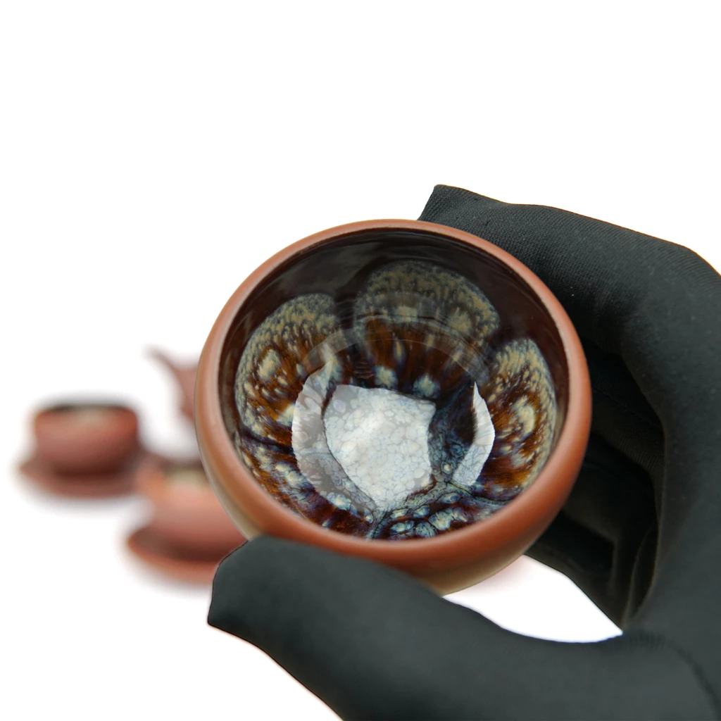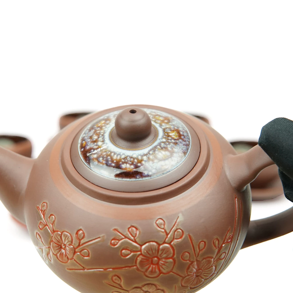 Bộ ấm Tử Sa 350ml Hỏa Biến Chén Lòng Hoa Gốm Sứ Bát Tràng của nghệ nhân Vương Mạnh Tuấn