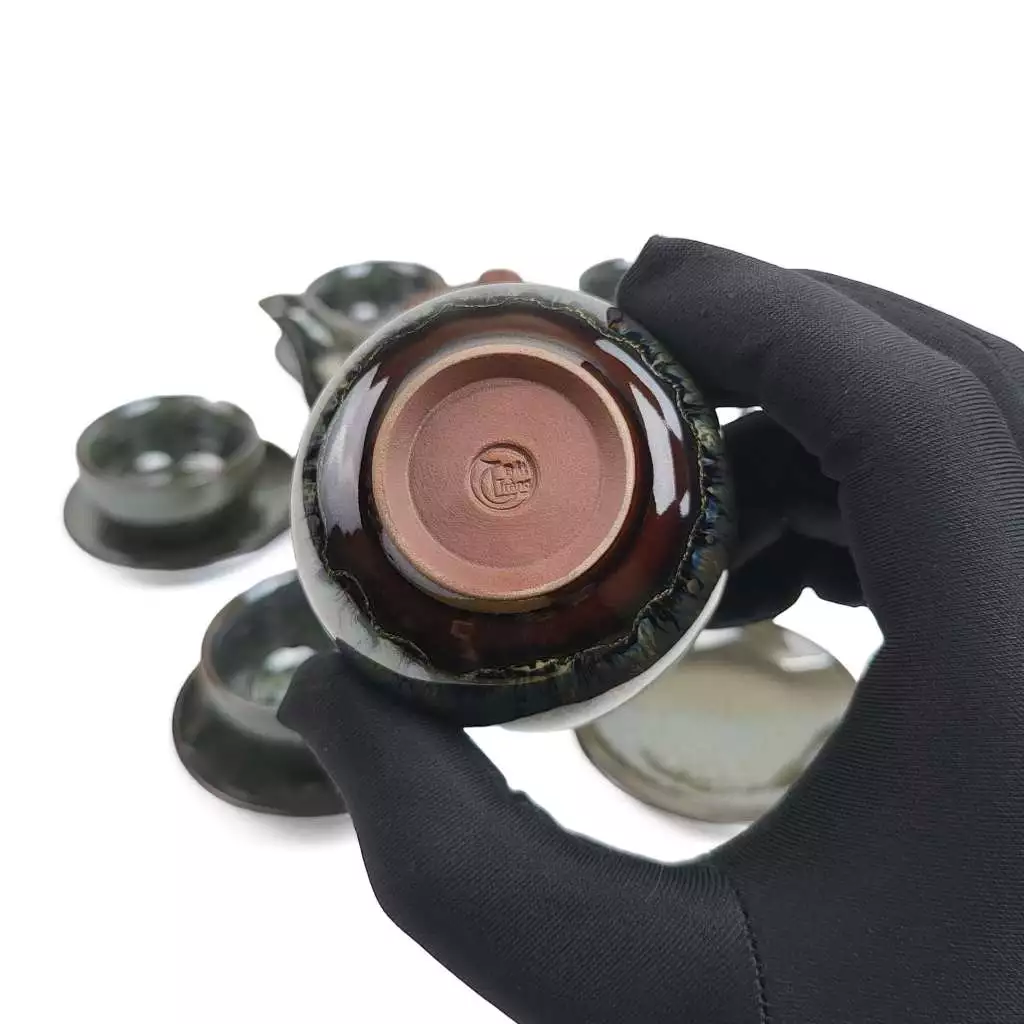 Bộ Ấm Chén Tử Sa 200ml Ngọc Thạch Búp Sen Nhỏ Gốm Sứ Bát Tràng Men Hỏa Biến của nghệ nhân Vương Mạnh Tuấn